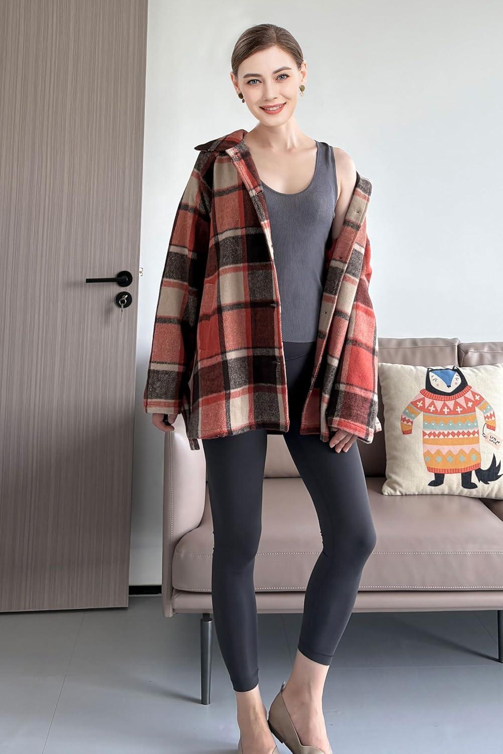 The women's flannel shirts long sleeves are made of a blend of 10% wool, 30% cotton, and 60% polyester. The coat is of good quality,soft,warm,comfortable, wind resistant,can be worn for a long time throughout the year. The oversized, loose and casual shacket is an essential fashion item in the wardrobe that can be paired with any pants and shoes.